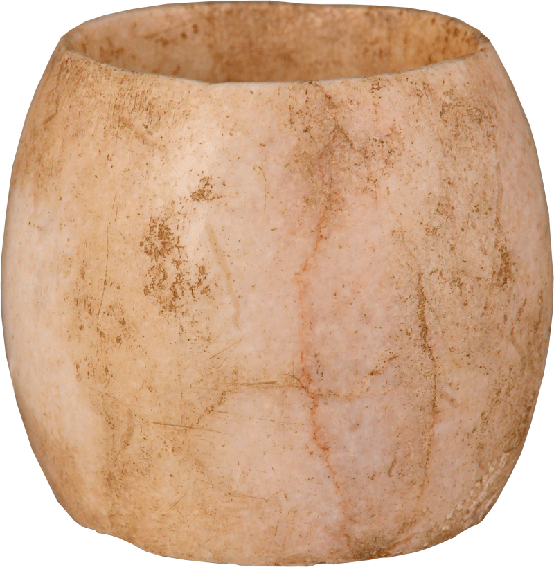 玉,因为其材质纯净、通透且坚硬,备受喜欢。齐家文化古人常用玉来制作礼器。在齐家文化墓葬中,玉器常与陶罐、铜刀共处,暗示其参与生死轮回的礼仪功能。这件玉腕饰采用了双向对钻工艺技术,但器物内外壁光滑细腻,展现出齐家文化先民对力学原理的深刻理解和对钻孔技术的熟练掌握。