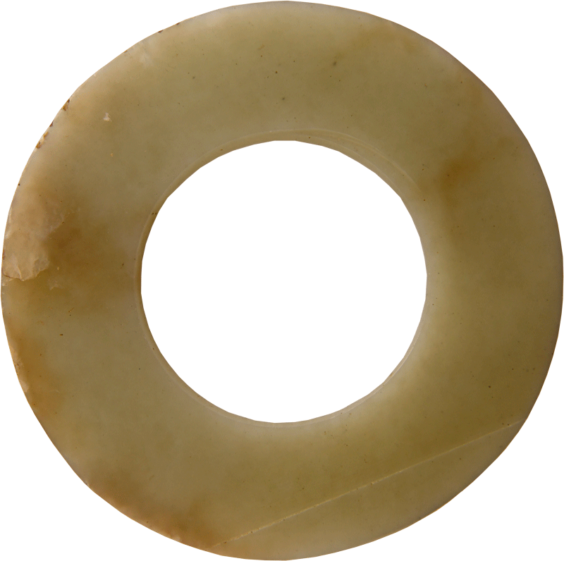 这件青玉瑗,历经四千年的岁月洗礼,色沁愈发漂亮,在保留原有色泽与光感的同时,更增添了一份时间沉淀独有的韵味,令人心醉神迷。它不仅是精美的艺术品,更是实证榆中大地在四千年前社会发展已步入复杂化进程的有力证据,彰显了中华文明源远流长、博大精深的突出特性。