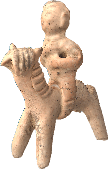 在遥远的新石器时代,人类的生产活动受到自然条件的极大限制,原始先民常常遇到多种自然灾难和野兽的危害。在野兽中,老虎是最凶猛的,所以,虎在原始先民眼中是威猛的象征。这件人骑虎陶塑也许体现了原始先民不畏猛兽的勇敢精神,表达了他们克服困难、改造生存环境的强烈愿望,寄托了他们对未来生活的美好向往。也许还有更深刻的寓意……